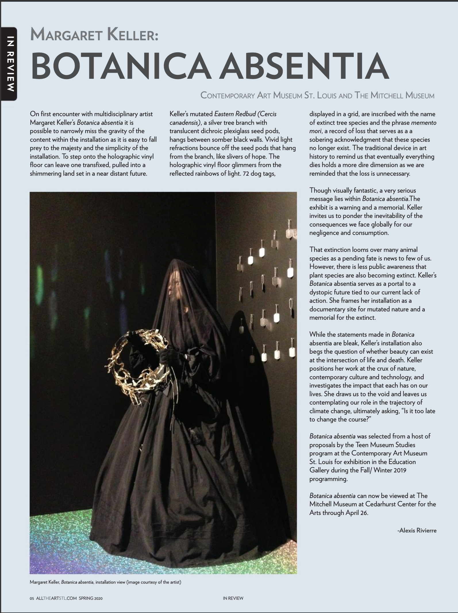 Review of Margaret Keller's Botanica absentia For All The Art, 2020. Read the isuue online at: https://issuu.com/alltheartstl/docs/winter2019finalupload?fr=sM2Y5NzIzMDc5NQ