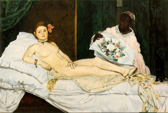 Above: Reine Noire Performance Still 1, 2018/ Olympia by Edouard Manet, 1863