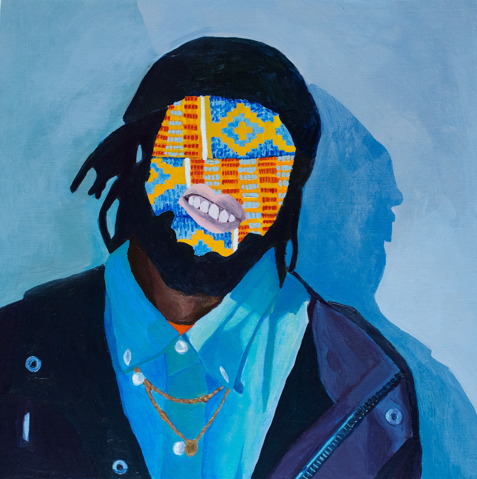 Above: Skinship (Kente portrait I), acrylic, 2019