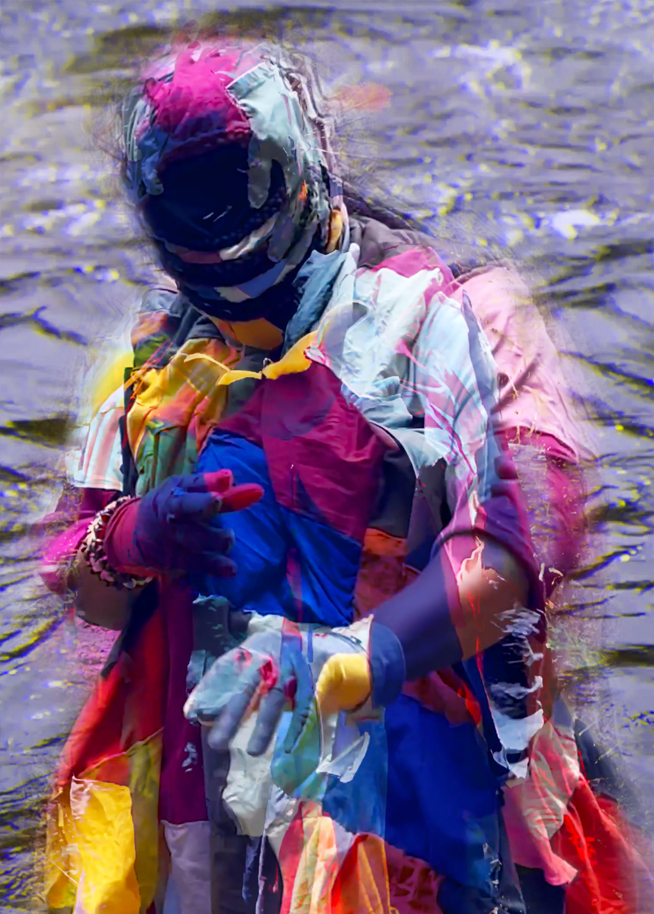 Left: Portrait of Wizdm, 2023; Right: Gihon Hastening (Wizdm sounds), 3 min 33 sec video, 2023.